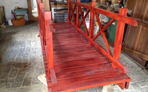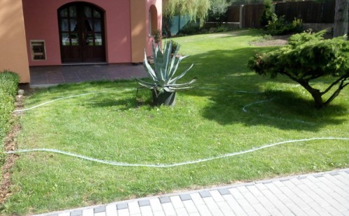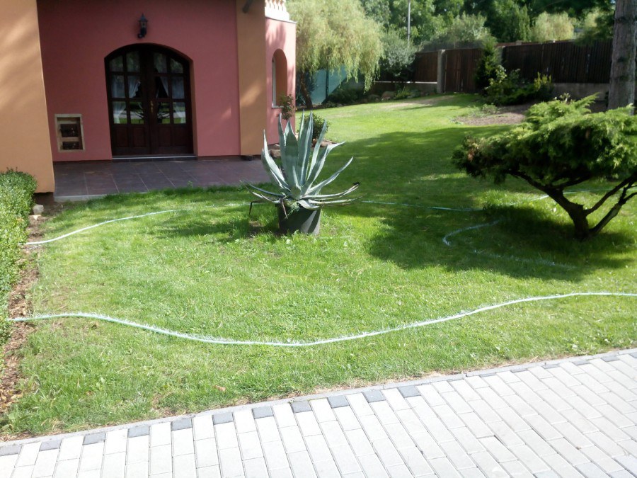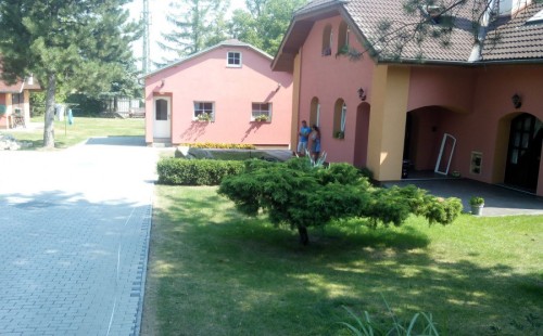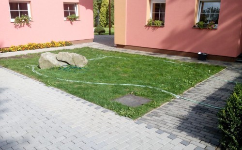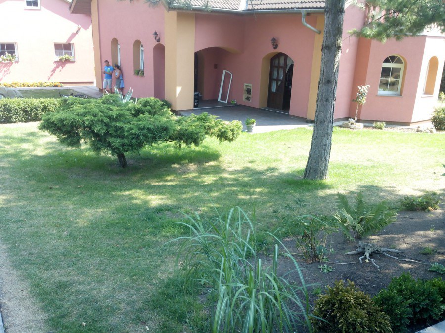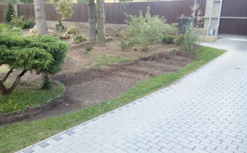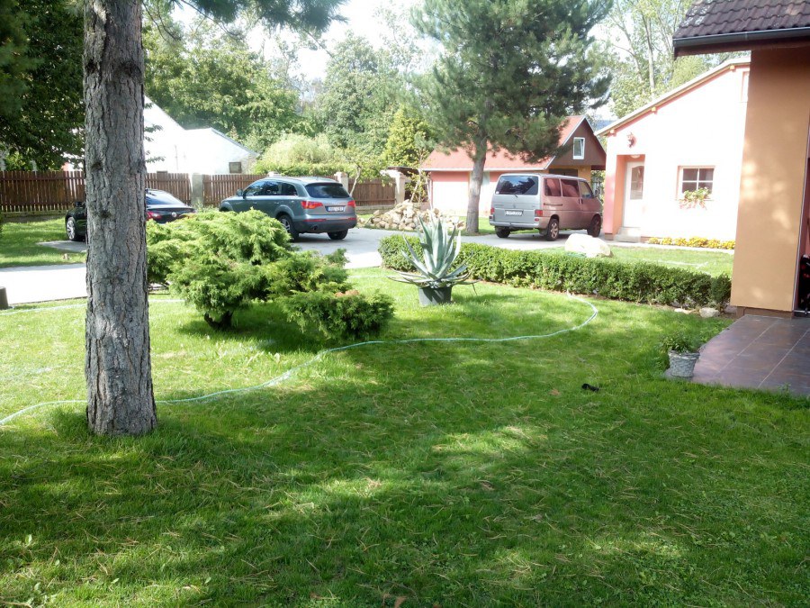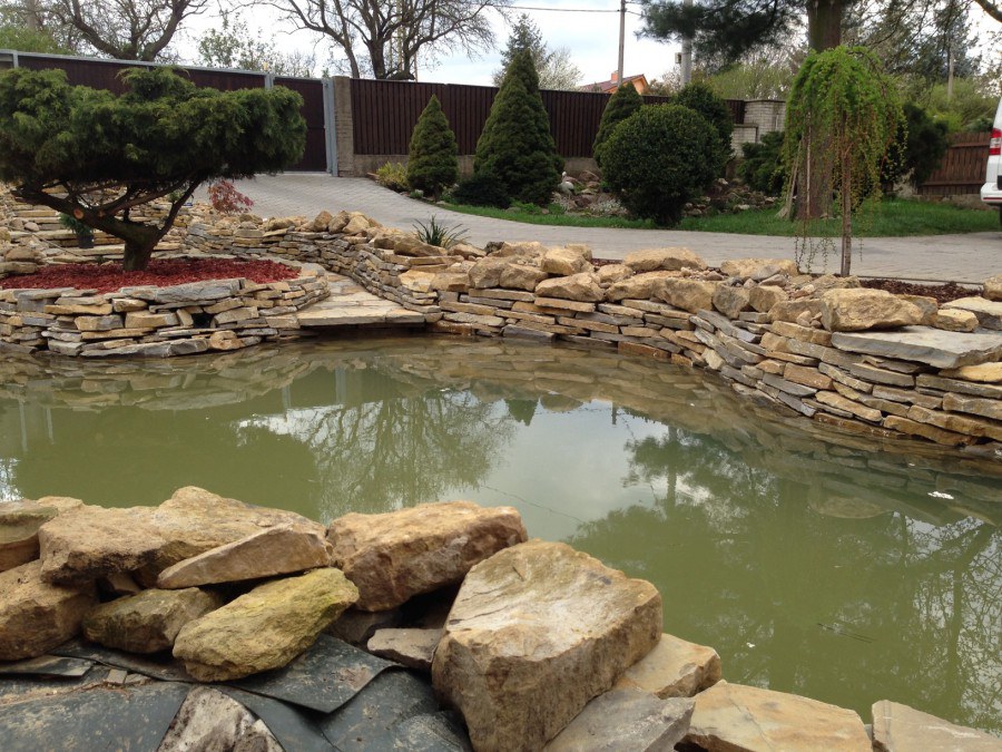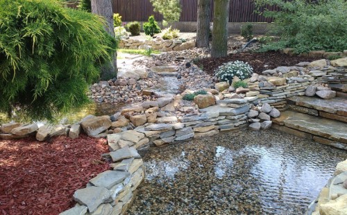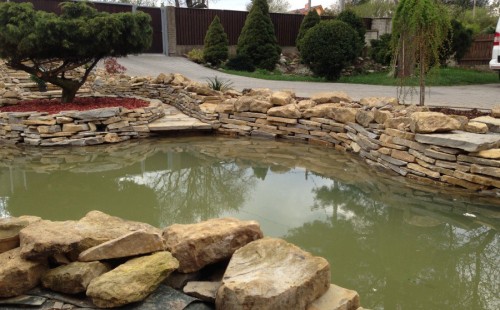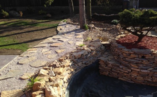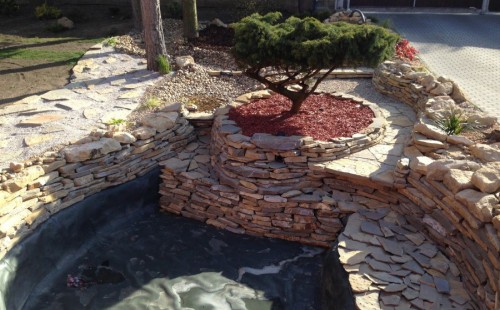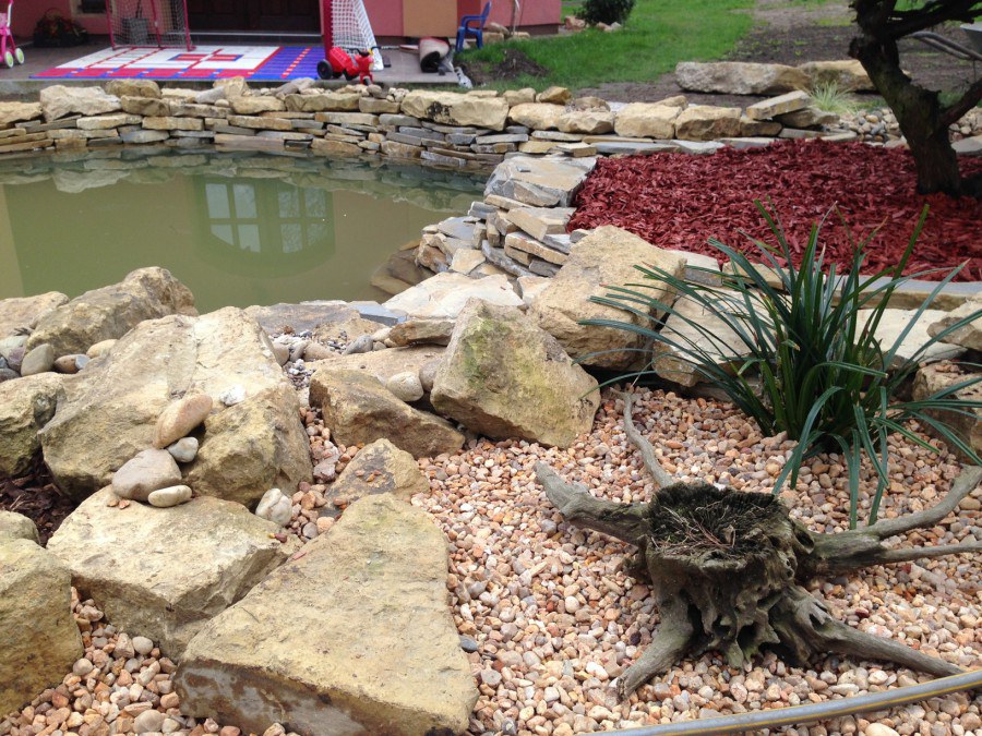 Do tohoto okrasného jezírka byli vypuštěni KOI kapři a jeseteři. Jezírko se stalo dominantou celého dvorku. Klient si nechal vytvořit okrasnou lávku přes jezírko, odkud může krmit a pozorovat své rybí miláčky.