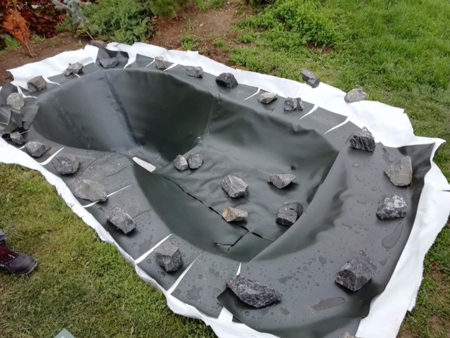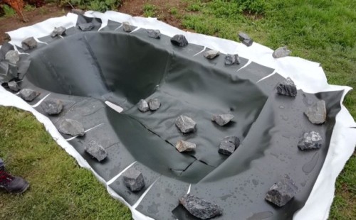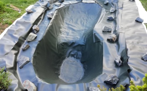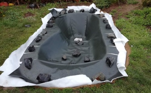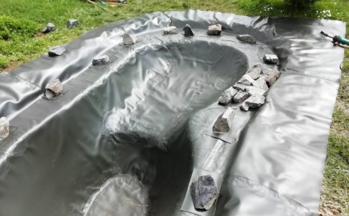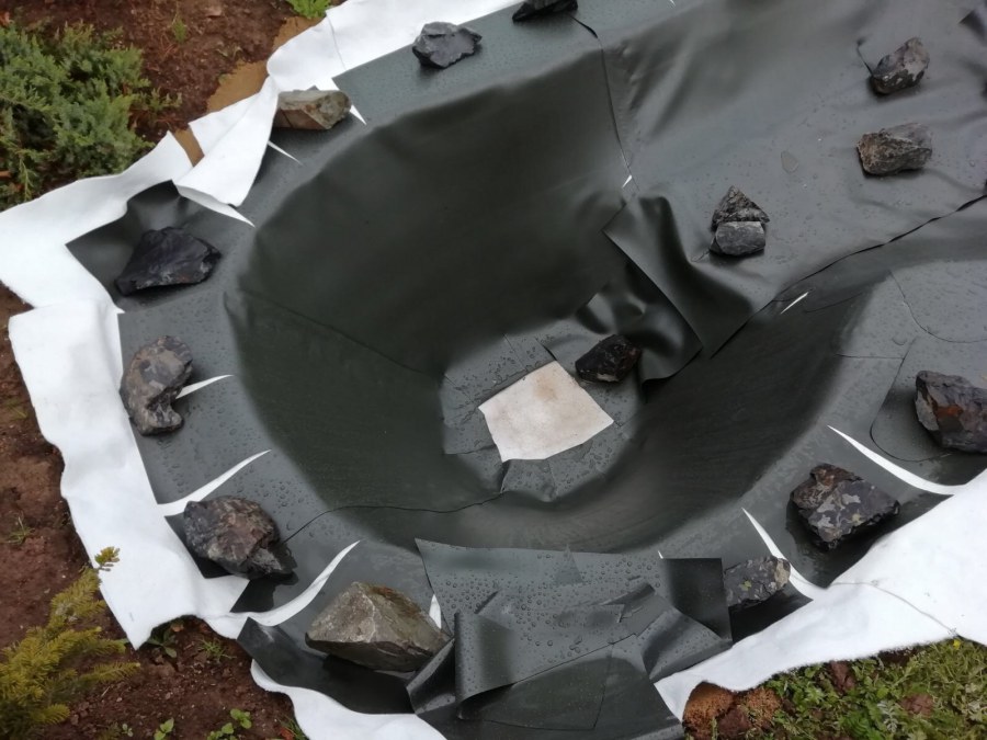 Pár let měli manželé v Roztokách plán udělat si na zahradě malé okrasné jezírko. Letos tento plán zrealizovali. Naši technici vyčistili a upravili několik let starou, zarostlou jámu do odpovídajícího tvaru. Hrany a dno jezírka vypískovali kopaným pískem. Poté povrch pokryli geotextílií 500g a následně začali s pokládkou jezírkové fólie Fatra Aquaplast 805/V olivově zelenou. Vzhledem k velikosti jezírka tyto práce netrvali dlouho. Majitelé chtěli jezírko malé, nenáročné na údržbu a jednoduchou technologii. Po napuštění má jezírko obsah do 10m3, doporučili jsme tedy filtrační systém od Oase. Čerpadlo položené na dně Oase AquaMax Eco Classic 8500 a na něj napojený filtr Oase Bio Tec ScreenMatic 2 60000. Na filtru je pověšená UV lampa Oase Vitronic 36W. Skimmer jsme doporučili plovoucí Oase SwimSkim25. Dokončovací práce, položení kamenů, výsadbu vodních květin si majitelé udělali sami.