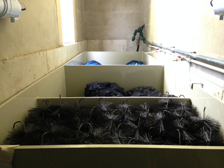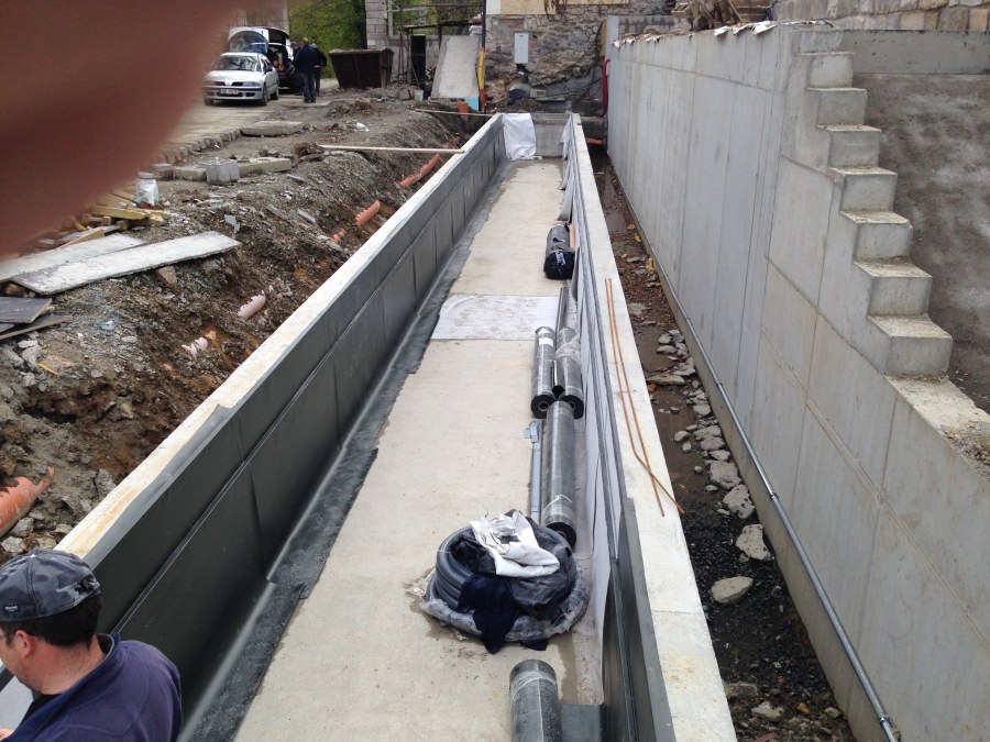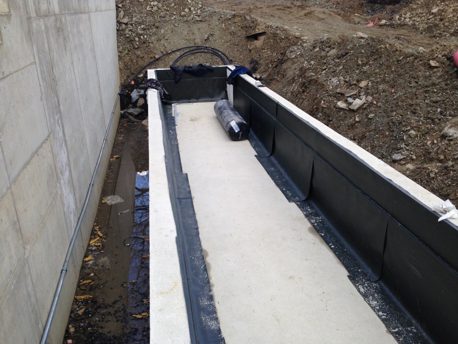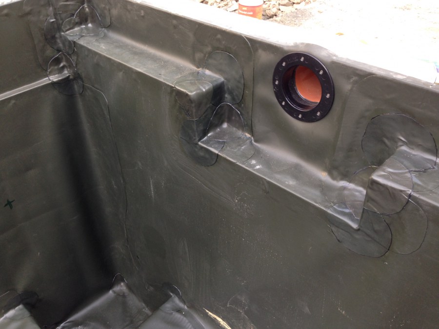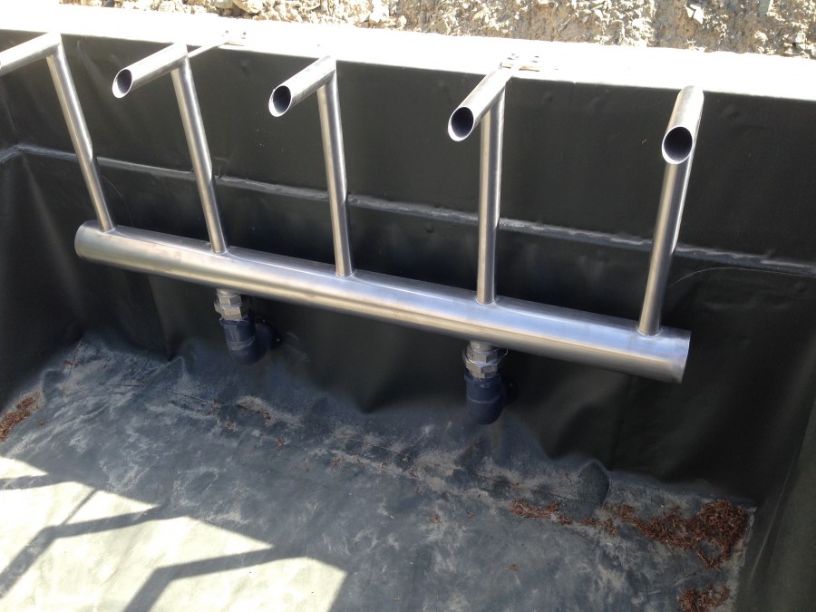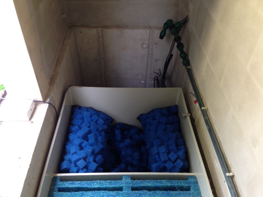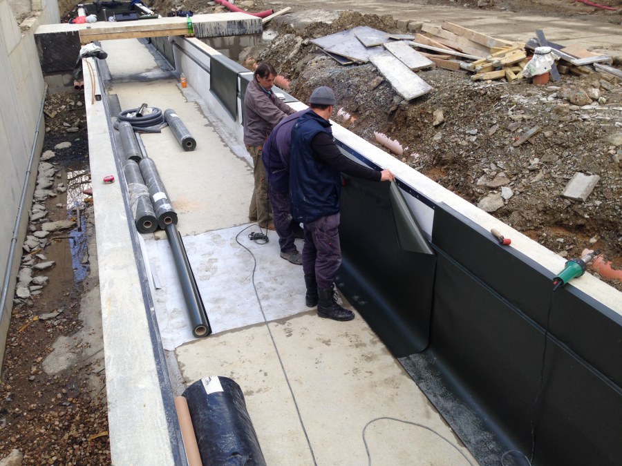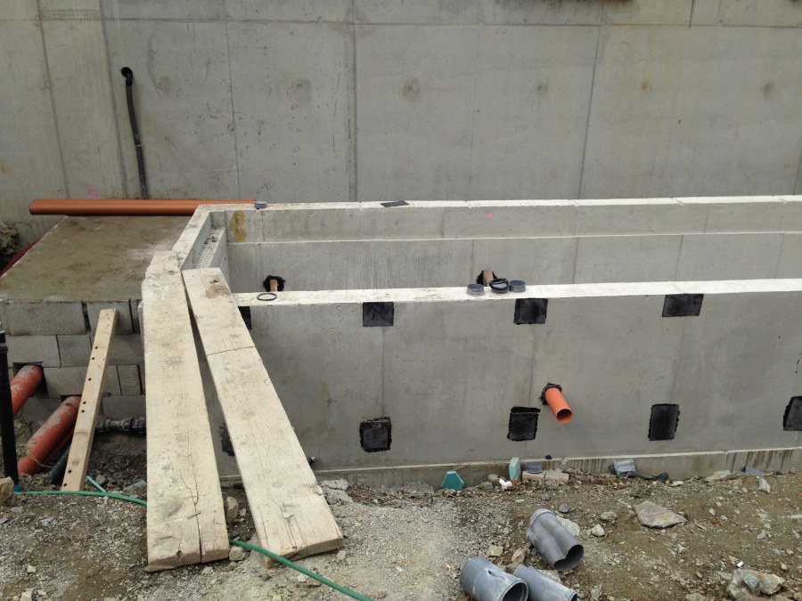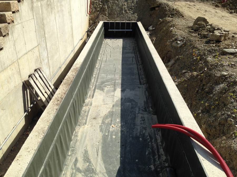 V roce 2019 jsme se zapojili do rekonstrukce malého zámečku. Náš úkol byl vystavět a zprovoznit vodní příkop u vchodu do zámku. Ze ztraceného bednění jsme vystavěli cca 40m dlouhé koryto 1m hluboké. Do stěn se vložilo několik fóliových přírub pro skimmery Oase Aquaskim Gravity a pro přítok vody, ten je vymyšlený tak, že se na stěnu napojí speciálně vyrobená nerezová tryska, která bude vhánět vodu do koryta. Před samotným foliováním se položila geotextílie 500g, na hrany se přivrtali speciální fóliové lišty, na které se poté začala navařovat jezírková fólie Fatra Aquaplast 805/V olivově zelená. Do malé technické místnosti pod schody se umístil na míru vyrobený filtr k němu se napojili 2 UV lampy TMC Pro Clear 110W a čerpadlo Oase AquaMax Eco Expert 21000. Hladinu vody hlídá automatické dopouštění Oase ProfiClear Guard.