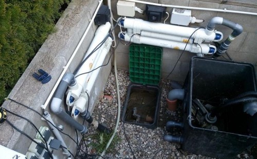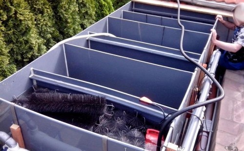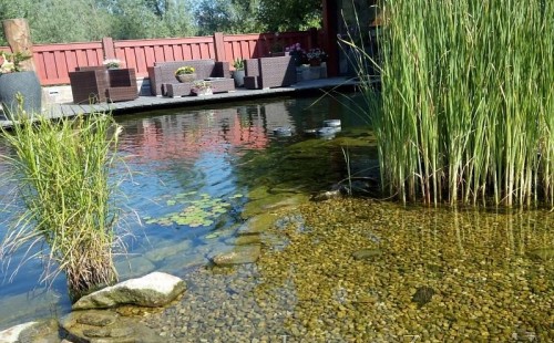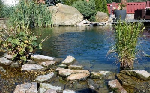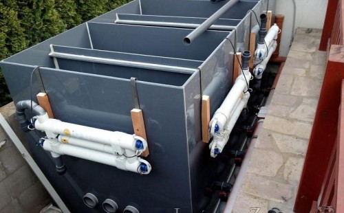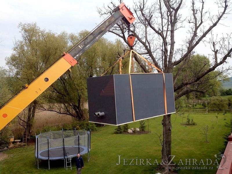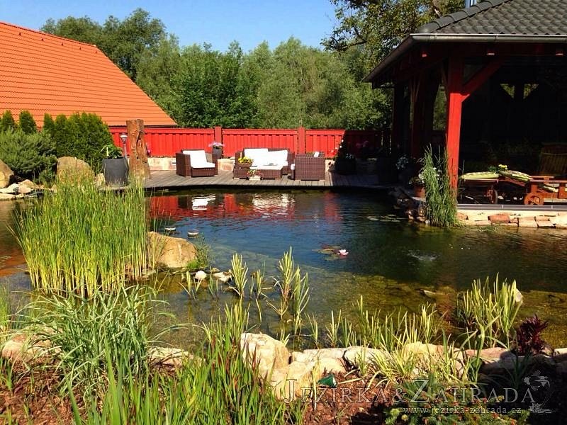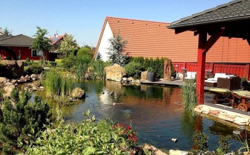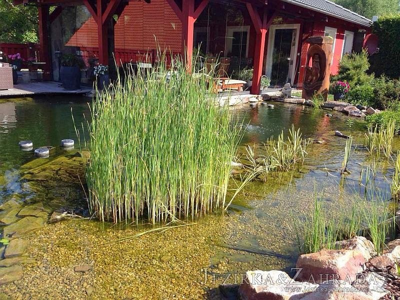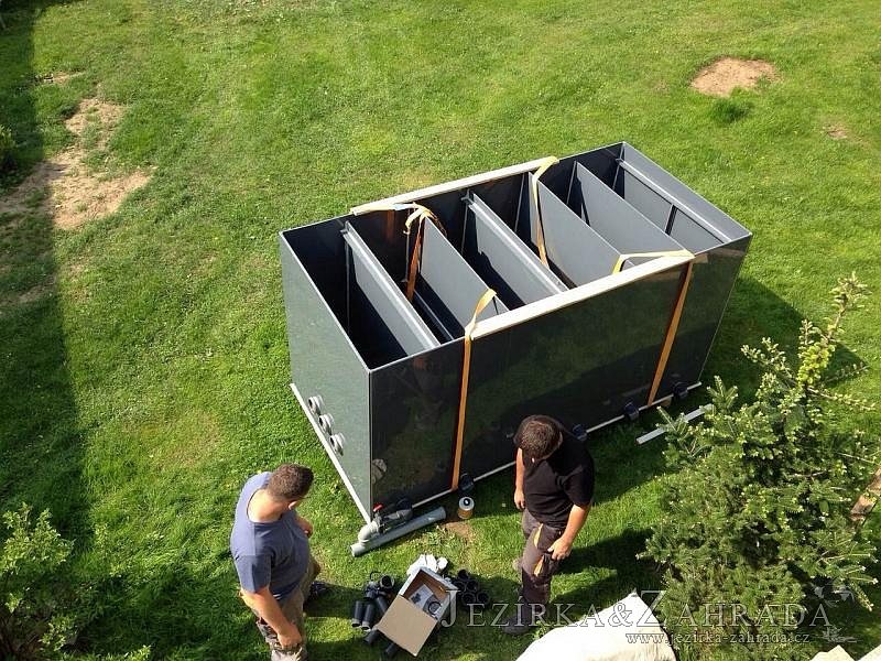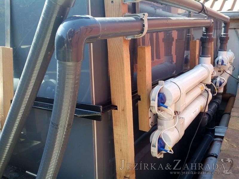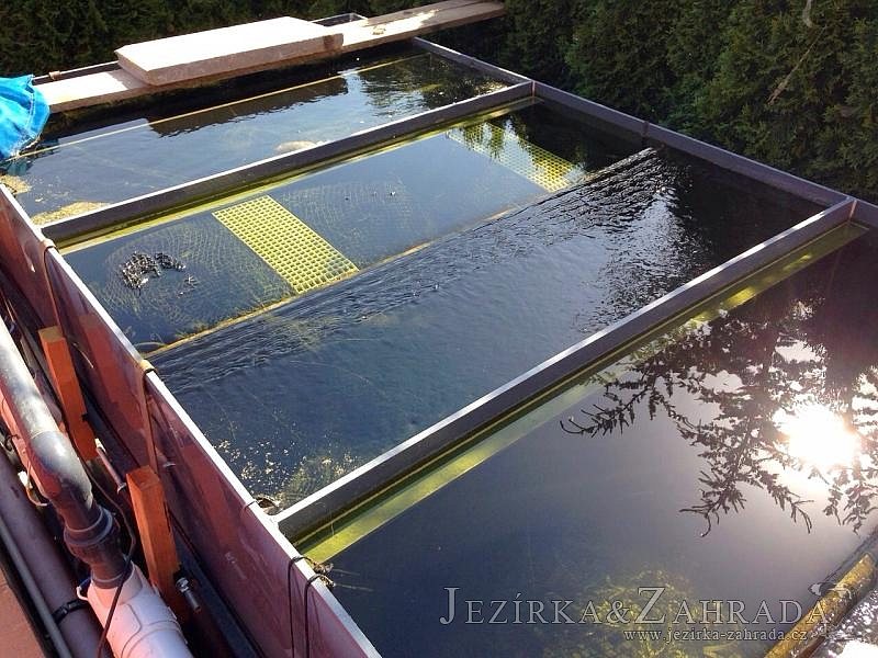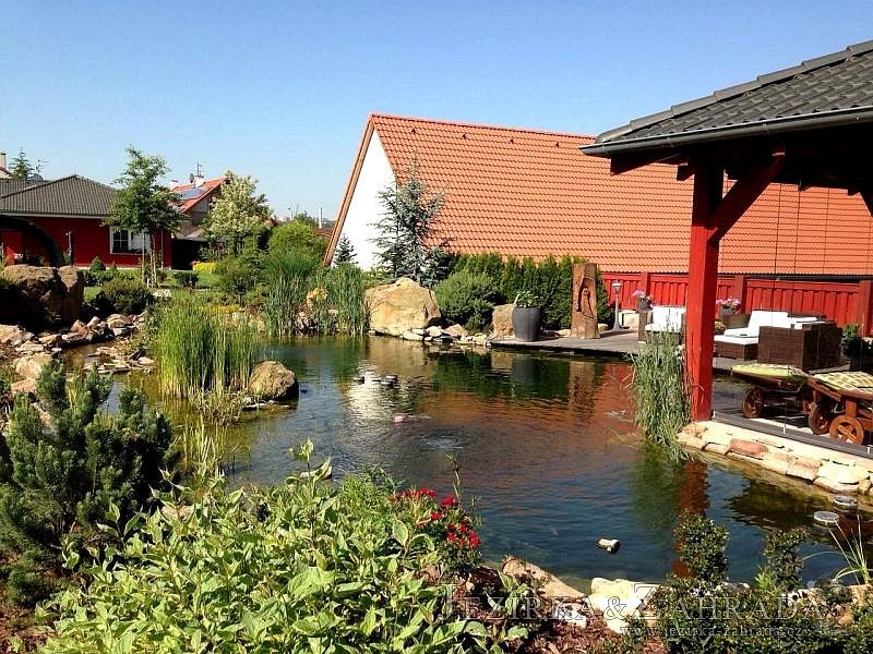 Zákazník se rozhodl po letech neúspěšného bojování se špatně fungující technologií pro změnu, nechal si od nás navrhnout technologii na okrasné jezírko o velikosti 70m3. Muselo se přihlížet k již upravenému terénu, zvětšovala se a upravovala technická místnost. Protože se jednalo o nestandartní rozměry nechali jsme vyrobit filtr na míru o objemu 6,5m3, k němu jsme přidali 1x štěrbinový filtr Budget 2, 3x UV lampu TMC Pro Pond Advantage 110W (klient 2x již vlastnil) a 3x osvětlovací set Oase LunAgua 3 Led set. Ze stávající technologie byl zachován skimmer Oase BioSys Skimmer+ a plovoucí skimmer Messner schwimmskimmer 200. Dle klientovo informací bylo znát zlepšení téměř po několika dnech.