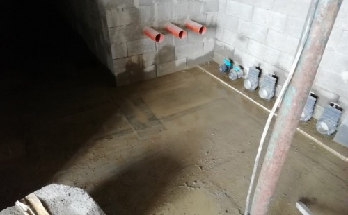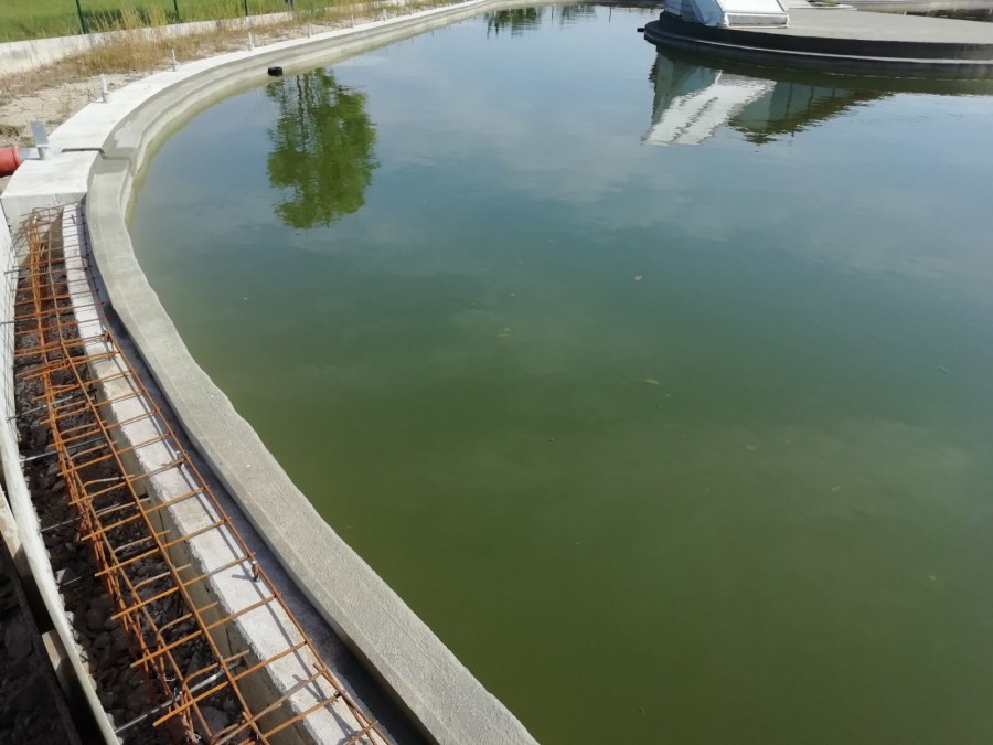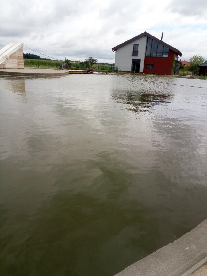 Od začátku roku jsme žili přípravou stavby technického zázemí pro vodní nádrž u novostavby domu ve Staročernsku. Vodní stavbu realizoval investor na místě sám se stavební firmou. Nádrž nemá vyfóliované dno, ale je opatřeno speciálním izolačním nátěrem. Náš úkol byl vytvořit fungující filtrační zázemí pro 1,4tis.m3 vody. Firma postavila dle našeho návrhu místnost, která je rozdělena na 2 sekce po 8 a 9 volně stojících kójích. Obsah filtračních kójí je celkem 40m3. Naši technici měli za úkol kóje vyfóliovat a naplnit filtračními médii. Nejdříve do stěn zasadili fóliové příruby. Do kóje položili geotextílii 500g, na hrany kójí přivrtali speciální lišty a na to následně navařili fólii Fatra Aquaplast 805/V. Na dno kójí vložili silné filtrační rošty a na to se začali vyskládávat různá filtrační média (kartáče, pytle s biokuličkami a kostkami z bioakvacitu).  K médiím je rozveden vzduch v PPR, pomocí kompresorů Jebao PA-200 (vzduch v médiích podporuje práci bakterií a tím je efekt čištění vody větší). Vodu do nádrží přivádí 4 silná čerpadla Oase AquaMax Eco Titanium 51000. Proti zelenání vody jsme připojili do systému 4 sestavy UV lamp TMC Pro Pond Advantage 550W.