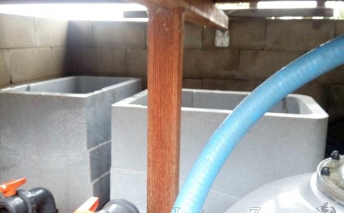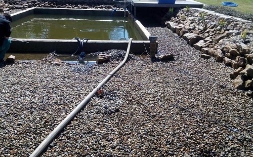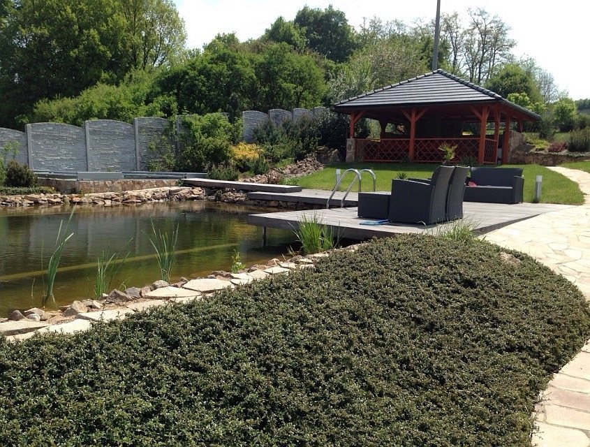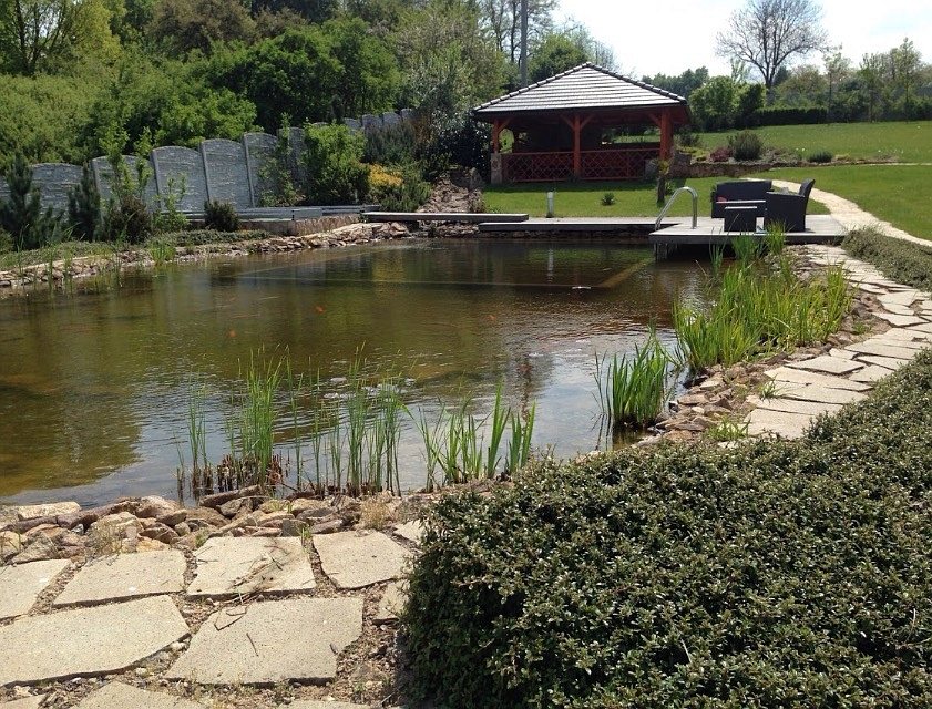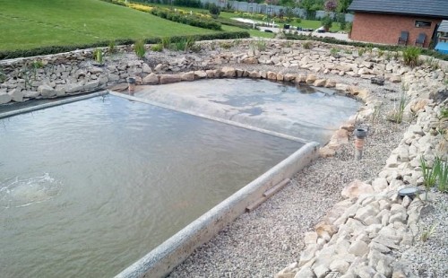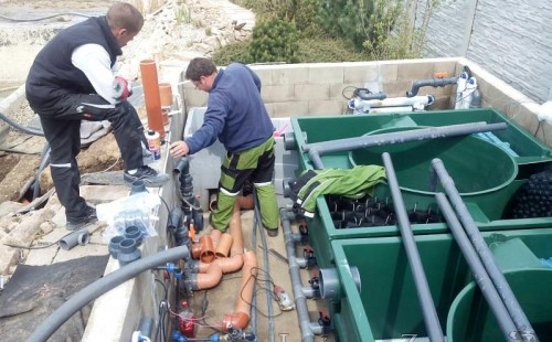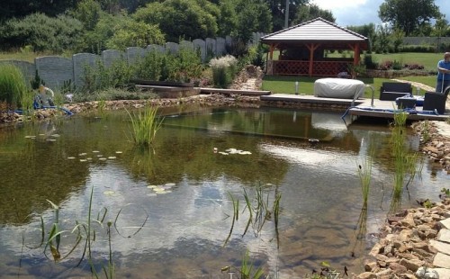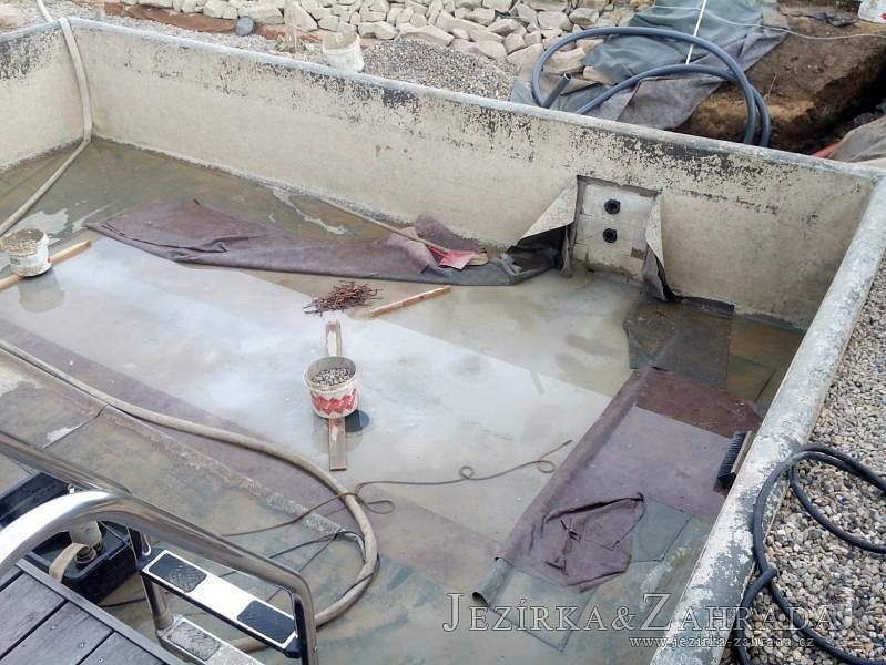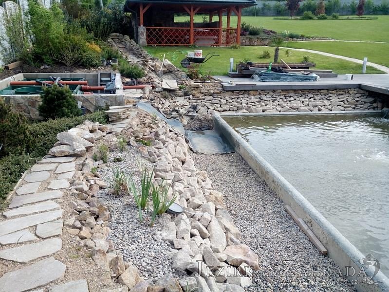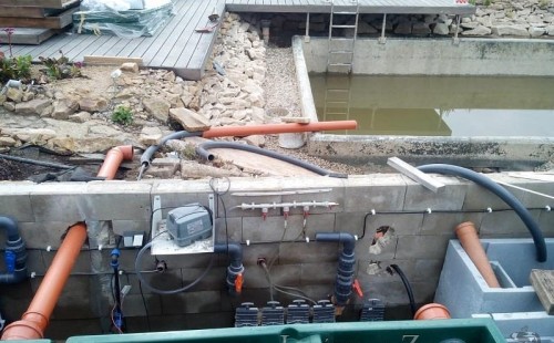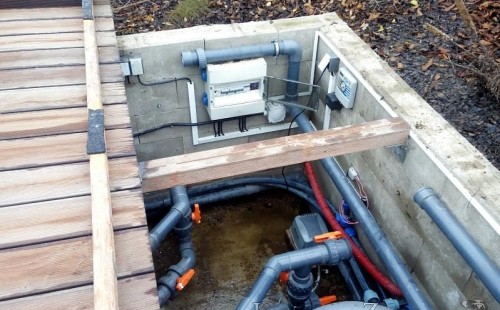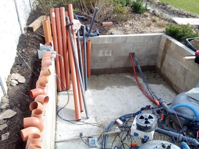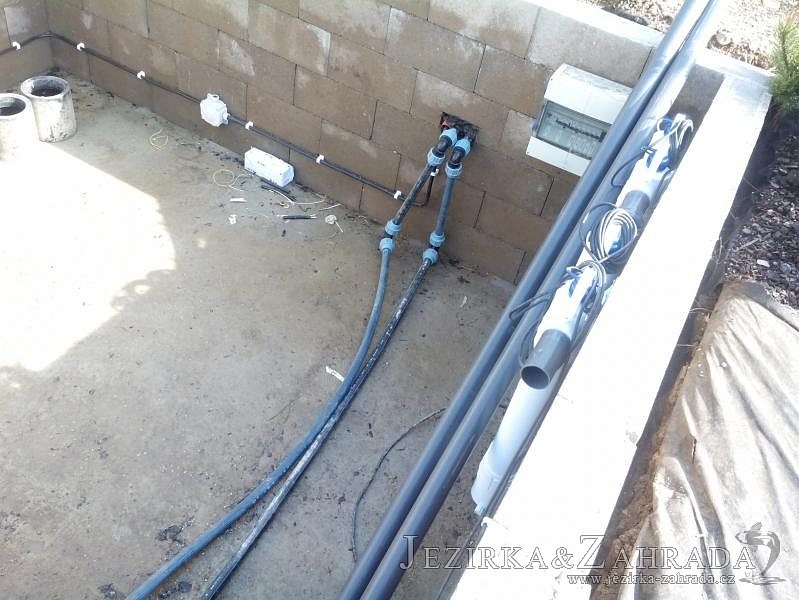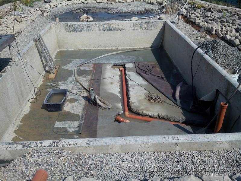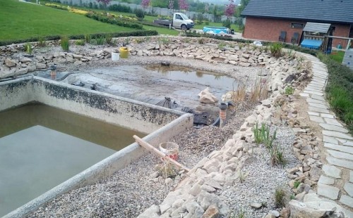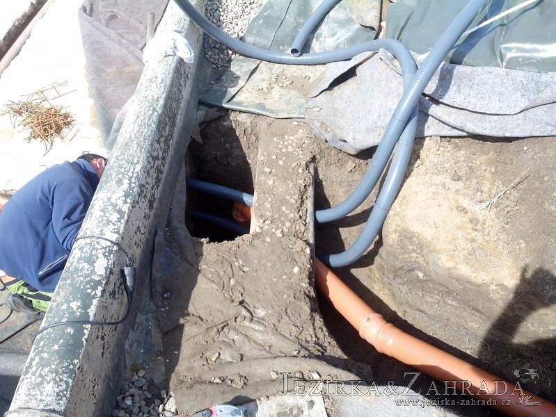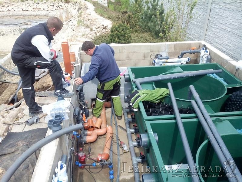 Obrátil se na nás klient, který již několik let neúspěšně "bojoval" s nefunkční technologií. I když ho původní technologie stála nemalé prostředky, byl nucen stávající systém předělat. Bohužel je zde i zbytečně velká mělká zóna, ale ta se ponechala v původním stavu. Nejprve se odlovily ryby, odkalilo a vypustilo se celé jezírko, demontovala se stávající technologie. Došlo k i částečné úpravě, narušení dna, položení potrubí a spodních gulí. Došlo k zadělání trubek a vrácení fólie do původního stavu. Musela se zvětšovat technická místnost, která byla nedostačující pro naši technologii. Pro toto koupací jezírko bylo navrženo: 2x biologicko-mechanický filtr Tripond Center-Vortex C115, 2x UV lampa TMC Pro Pond Advantage 110W + 2x UV lampa TMC Pro Pond Advantage 110W ze stávajícího systému a 2x štěrbinový předfiltr, čerpadla AquaForte O-series 16000 a Jebao ECO-AMP 16000, 2x gula dnová výpusť 110mm, rozvod vzduchu v PPR. Díky nové technologii se zákazník mohl začít těšit z krásného čistého jezírka.