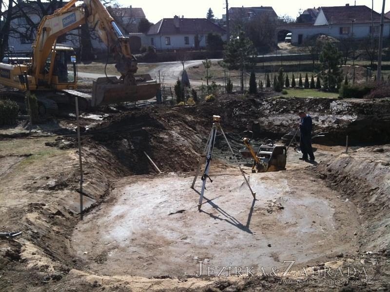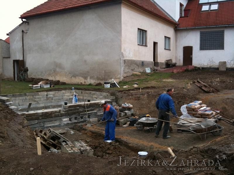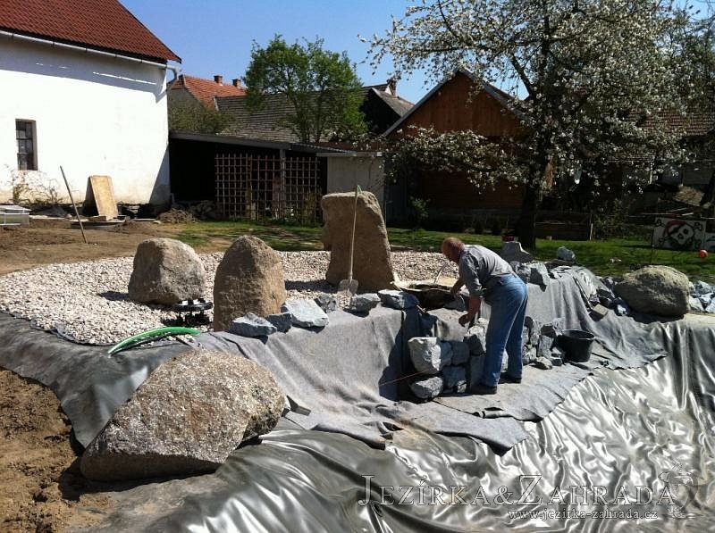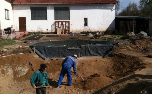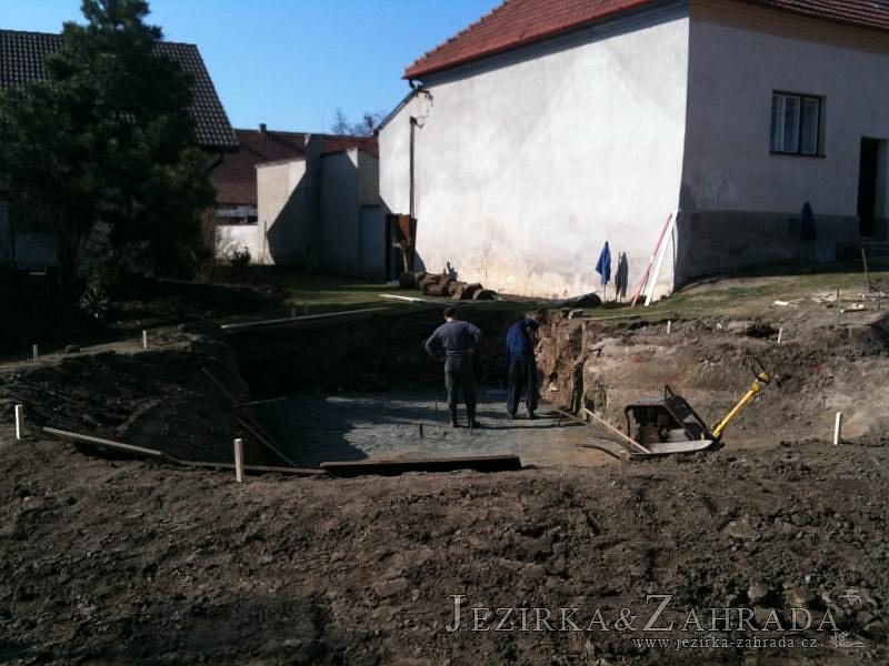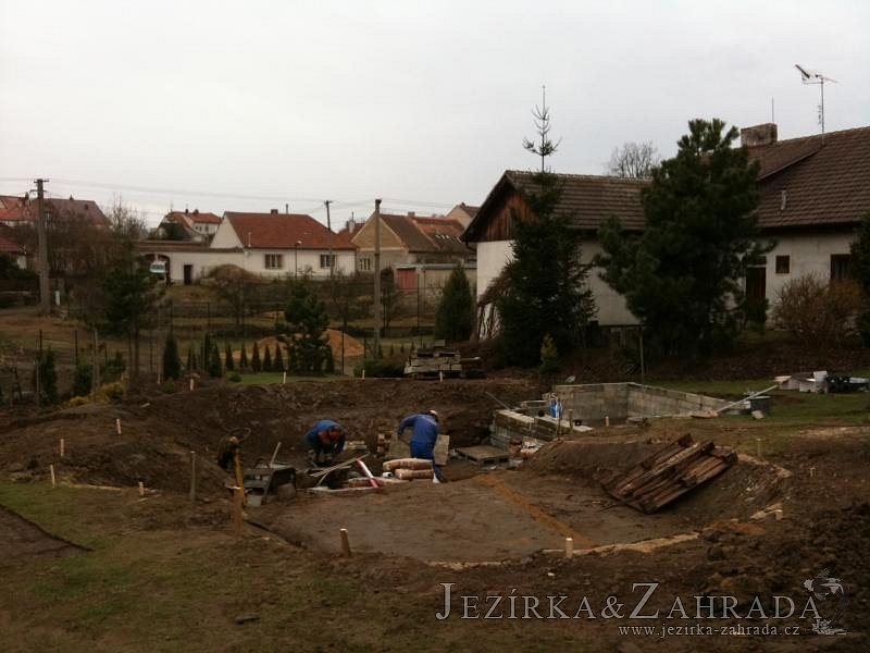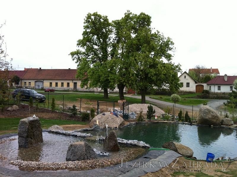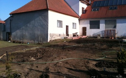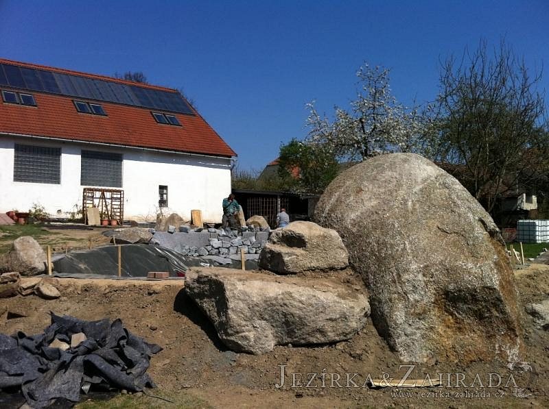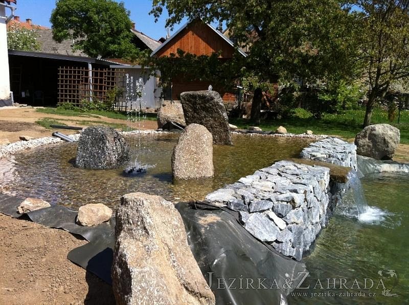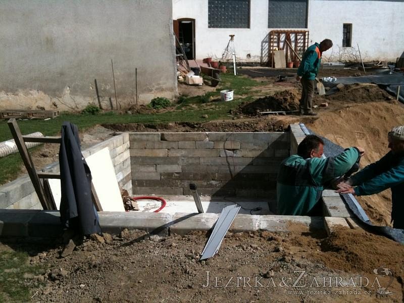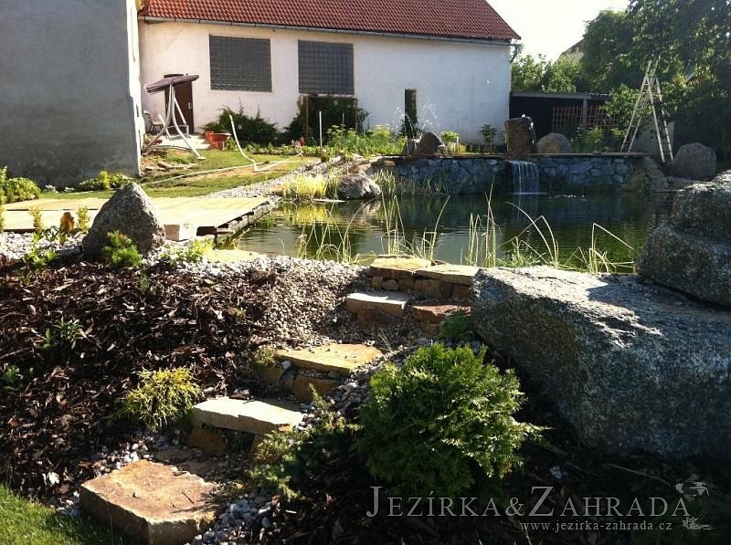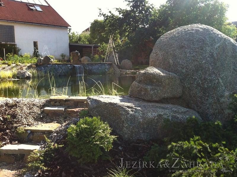 Stavba velmi propracovaného moderního koupacího jezírka o velikosti cca 110m3, kde bude použit 2x mechanicko-biologický filtr Tripond Center-Vortex C115, 2x UV lampa TMC Pro Pond Advantage 110W, 2x čerpadlo Messner eco 20000l/hod, 2x vzduchovací motor Resun PG 100. Zapojení technologie gravitačně 2x trubkový skimmer Oase AquaSkim Gravity, 2x gule -dnová vpusť 110mm. Jezírko bylo stavěno ve velmi svažitém terénu. Po dohodě s investorem jsme se rozhodli, že celé jezírko bude rozděleno na dvě části s rozdílnými hladinami. Vrchní jezírko bude mělká zóna s kačírkem a vodními rostlinami, kde přepadem bude přebytečná voda protékat do hluboké níže posazené koupací části. Technologická místnost bude ukryta pod velmi rozlehlou terasou s hydraulickým otvíráním, která bude zároveň sloužit jako odpočinková zóna v těsné blízkosti koupací části se vstupem do vody. Další atrakce: fontána Oase Water Quintet s dálkovým ovladačem. Kamenná skála s jezem mezi vrchní mělkou zónou a spodní koupací zónou. Dále bylo navrženo automatické dopouštění vody zn. Belimo, velmi kvalitní ohřev vody z vrtu a jiné vymoženosti.