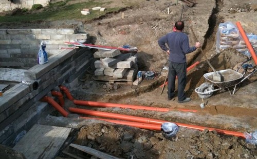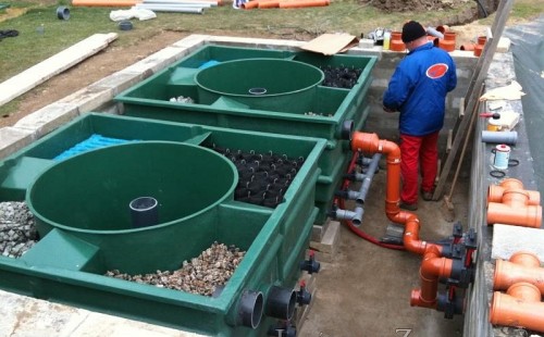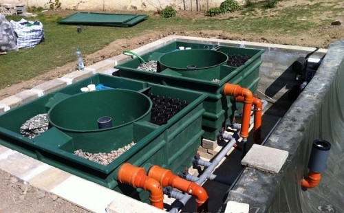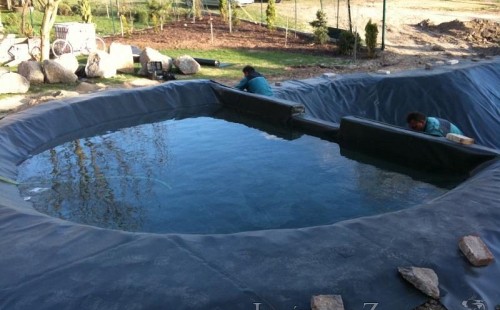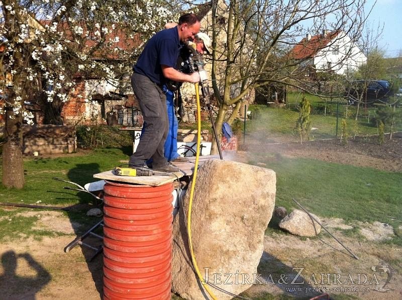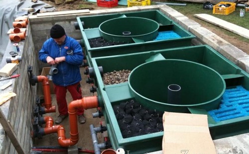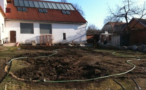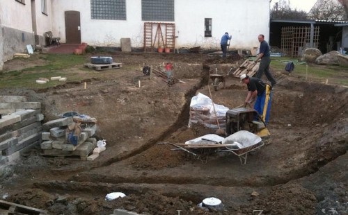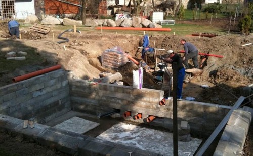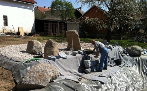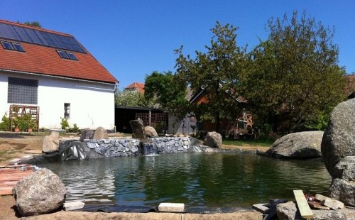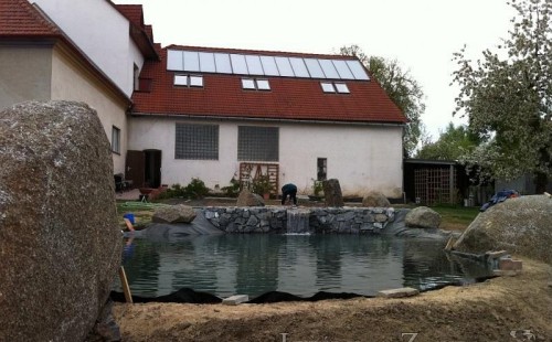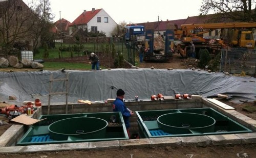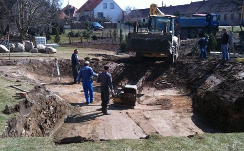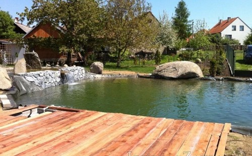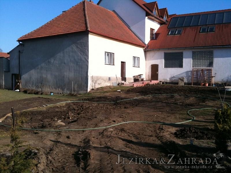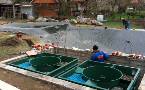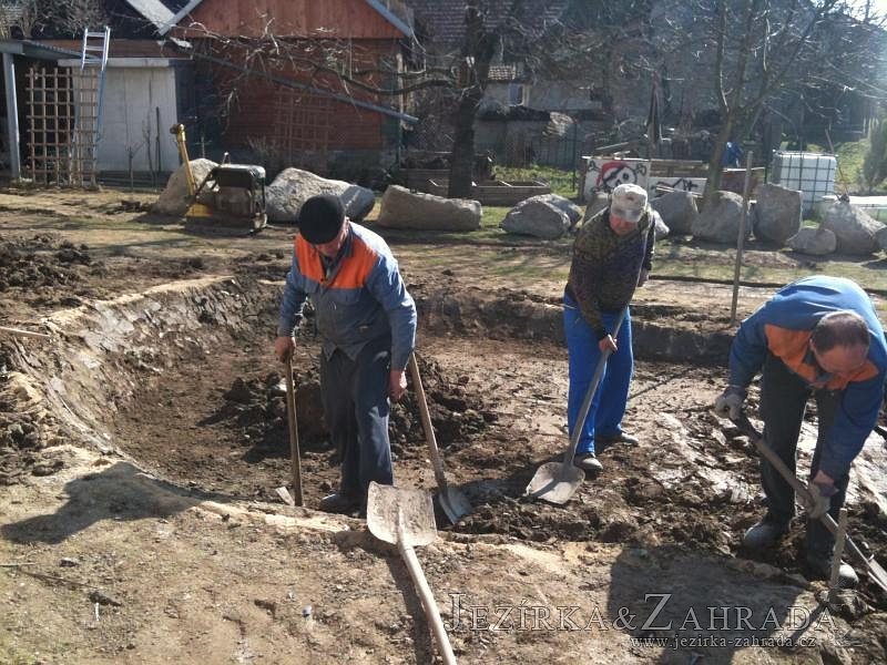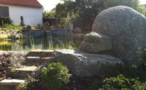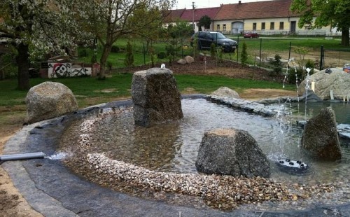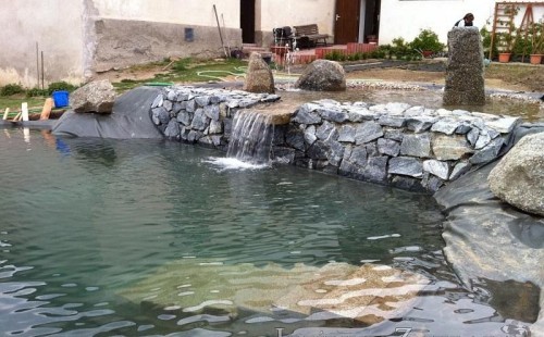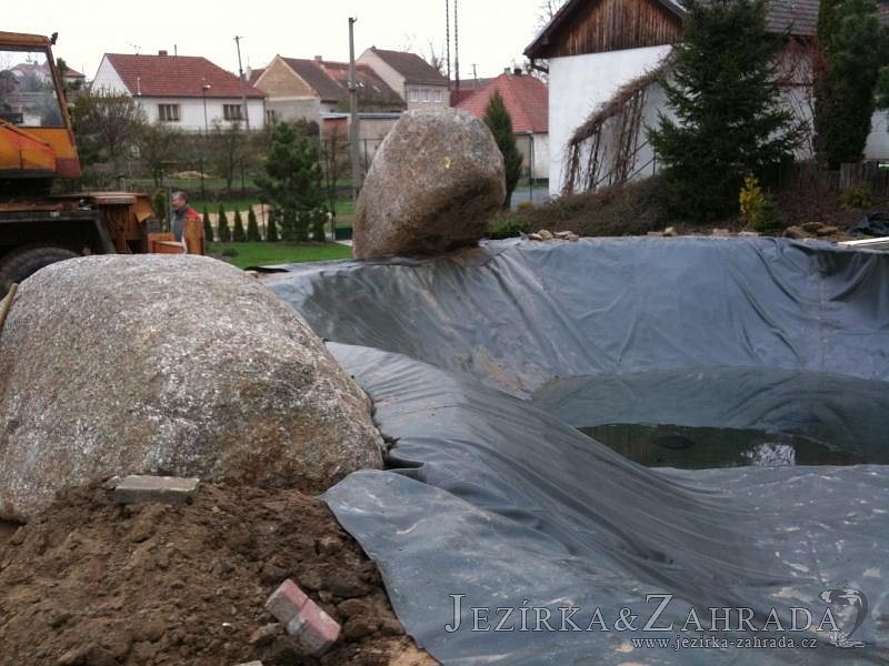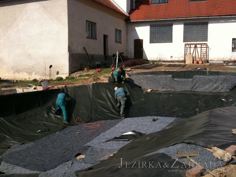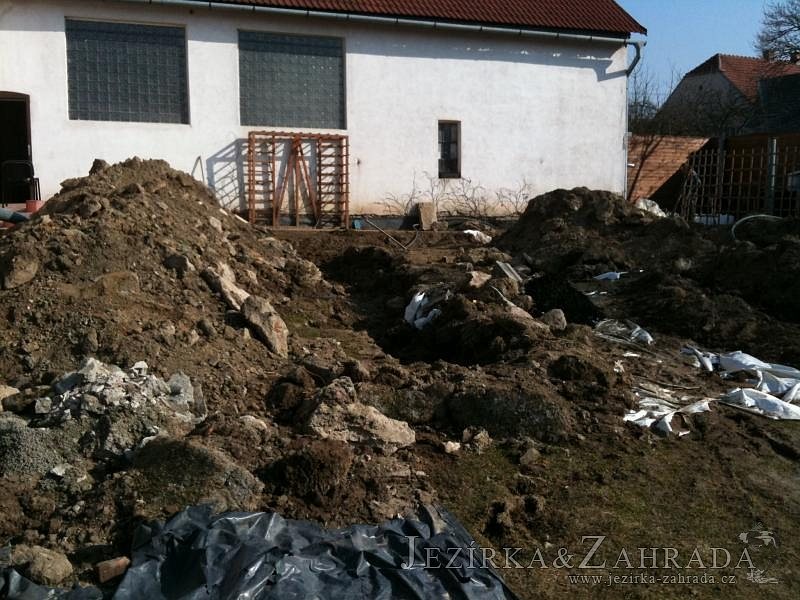 Stavba velmi propracovaného moderního koupacího jezírka o velikosti cca 110m3, kde bude použit 2x mechanicko-biologický filtr Tripond Center-Vortex C115, 2x UV lampa TMC Pro Pond Advantage 110W, 2x čerpadlo Messner eco 20000l/hod, 2x vzduchovací motor Resun PG 100. Zapojení technologie gravitačně 2x trubkový skimmer Oase AquaSkim Gravity, 2x gule -dnová vpusť 110mm. Jezírko bylo stavěno ve velmi svažitém terénu. Po dohodě s investorem jsme se rozhodli, že celé jezírko bude rozděleno na dvě části s rozdílnými hladinami. Vrchní jezírko bude mělká zóna s kačírkem a vodními rostlinami, kde přepadem bude přebytečná voda protékat do hluboké níže posazené koupací části. Technologická místnost bude ukryta pod velmi rozlehlou terasou s hydraulickým otvíráním, která bude zároveň sloužit jako odpočinková zóna v těsné blízkosti koupací části se vstupem do vody. Další atrakce: fontána Oase Water Quintet s dálkovým ovladačem. Kamenná skála s jezem mezi vrchní mělkou zónou a spodní koupací zónou. Dále bylo navrženo automatické dopouštění vody zn. Belimo, velmi kvalitní ohřev vody z vrtu a jiné vymoženosti.