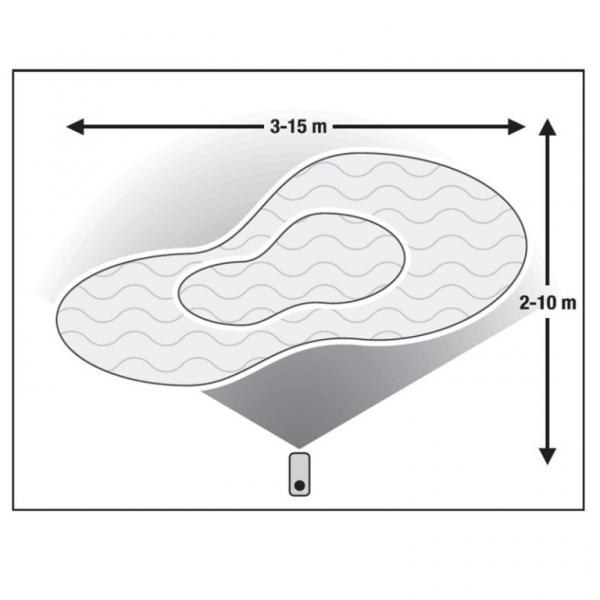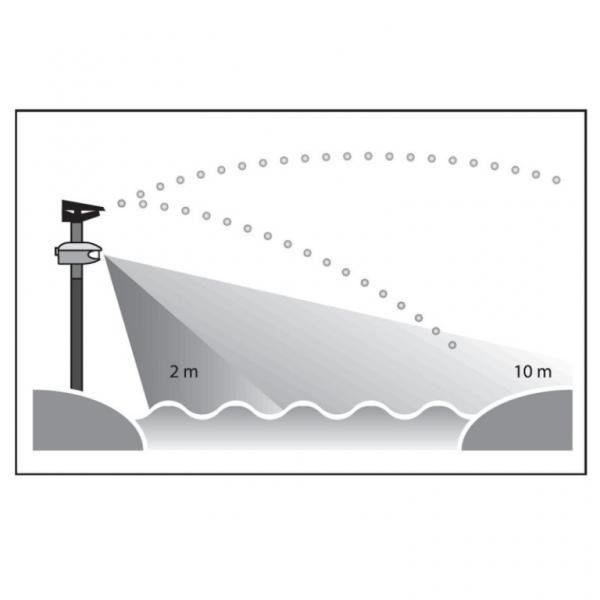 Zvířata jsou vystrašená náhlým proudem vody, který může mít akční rádius 105°. S dosahem kolem 10 až 12m dosahuje kolem 100m².