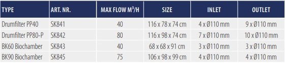 - Naše na zakázku vyrobené biokomory AquaForte PP se dokonale hodí k těmto bubnovým filtrům AquaForte a lze je snadno namontovat pomocí pružných spojek. Jsou vybaveny gumovými membránovými provzdušňovači a PVC přípojkami a jsou ideální pro filtrační média, jako je Helix/Helix Plus. Mřížky mají mezeru 8 mm (nevhodné pro KNS a jezírkové třísky/vločky). BK60 pojme až 150 l médií, zatímco BK90 pojme až 350 l médií. Tyto pokročilé bubnové filtry a biokomory AquaForte usnadňují a zefektivňují proces filtrace než kdykoli předtím.