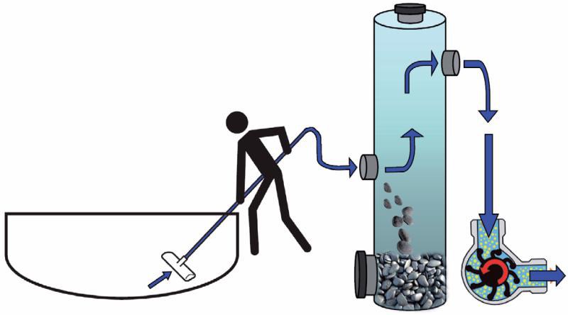 Bez problémů vysaje řasy, kal, zbytky zetlelých rostlin, odumřelé listy a jiné nečistoty ze dna jezírka.