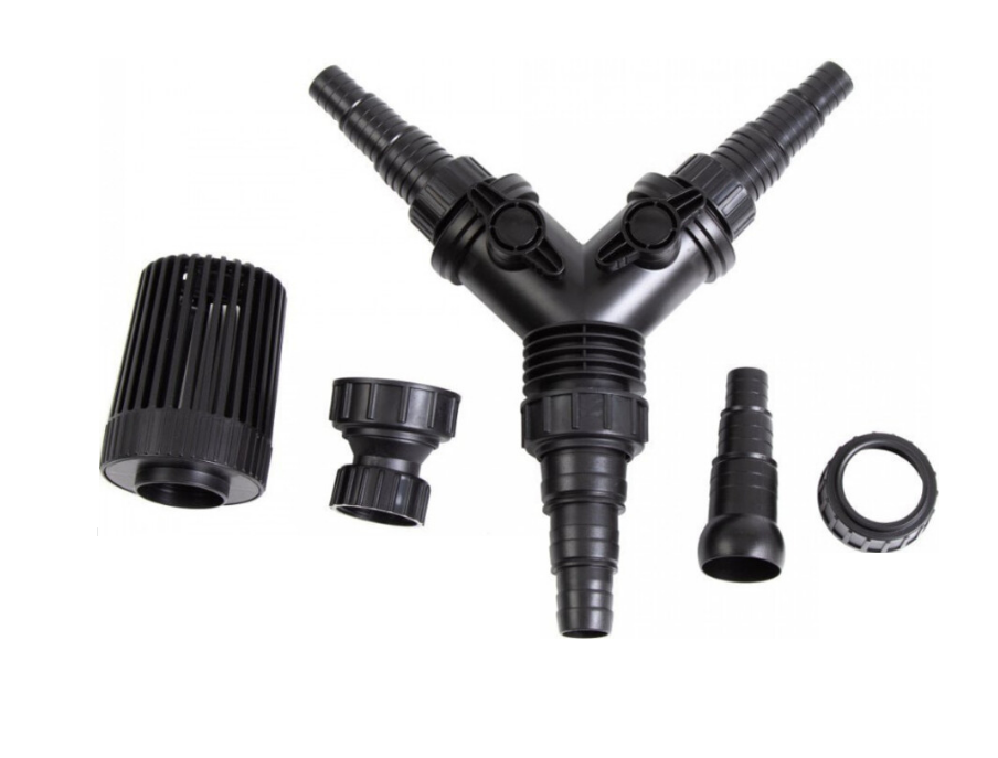 • Rozdělovač můžeme také použit k rozdělení vstupu u čerpadel, která nemají duální sání či odbočku na připojení skimmeru, při tomto použití tělo rozdělovače propojíme pomocí šroubení přímo s čerpadlem.