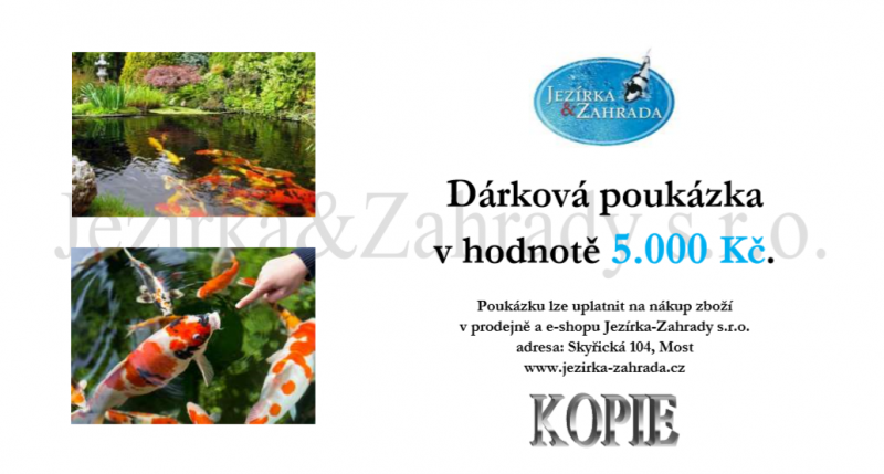 E-shop Poukázky, suvenýry (KOI) » Dárková poukázka 5000 Kč