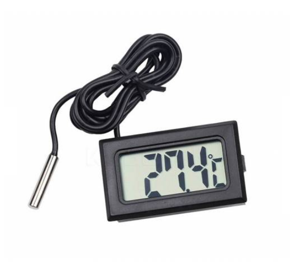 Digitální teploměr s LCD displejem a externím čidlem. LCD displej musí být vždy umístěn ve vnitřních prostorech.
