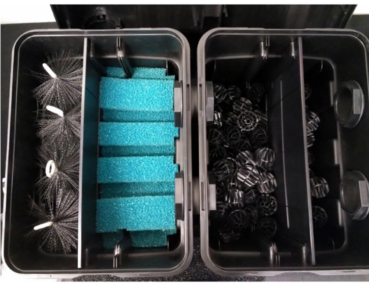 filtr s víkem, filtrační pěnovky, biokuličky, filtrační kartáče