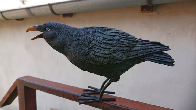 Parádu udělá samostatně stojící kdekoliv mezi Vaší zelení a květinami. Havran v provedení z polystonu nám tak může krášlit balkon, terasu nebo nám může zdobit zahradu, jeho oblíbené místečko bude také u Vašeho zahradního jezírka. Tato soška určitě potěší i Vaše blízké jako milý dárek. Soška je vyrobena z polystonu.