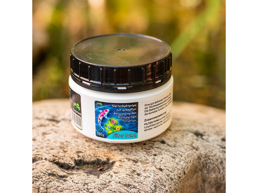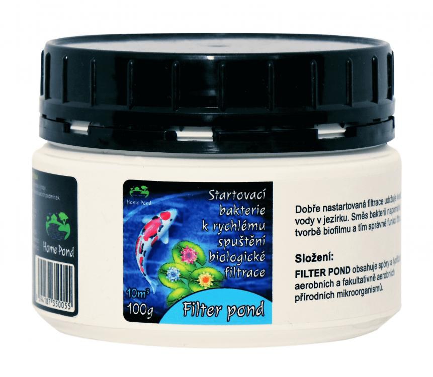 - Filter Pond jsou přírodní koncentrované mnoha druhové bakterie určené k naběhnutí filtrace a nastartování jezírka po zimě. Filtrační bakterie do jezírka (nebo také startovací bakterie) jsou alfou a omegou biologického čistění jezírka.