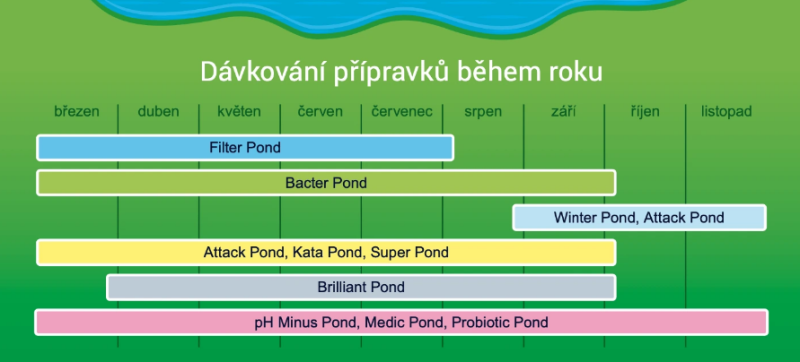 - 1 dávka ošetří jezírko na 1-4 měsíce.