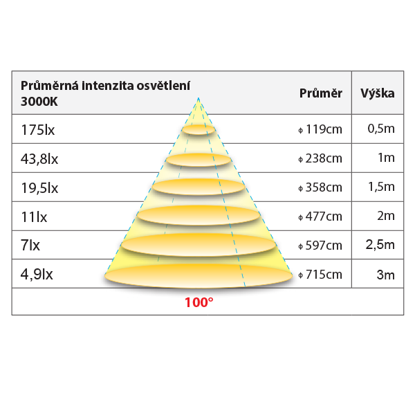 - Vyzařovací úhel (°)- 100