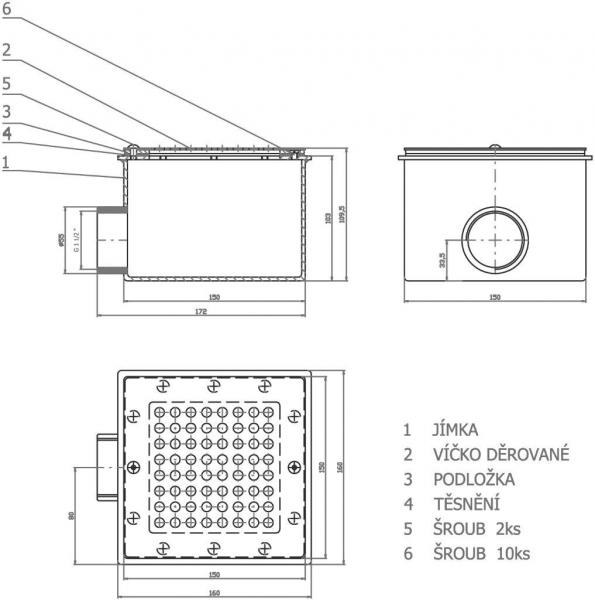 Podlahová výpusť-gula čtvercová.