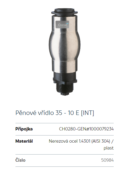 Upřesnění parametrů pro Oase 35-10E (fontánová tryska)