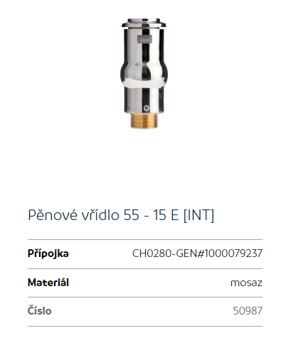 Upřesnění parametrů pro Oase 55-15E (fontánová tryska)