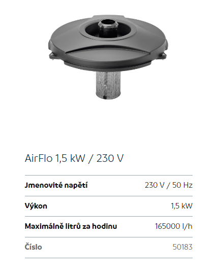 Upřesnění parametrů pro Oase AirFlo 1,5kW/230V (výkonný aerátor s fontánou)