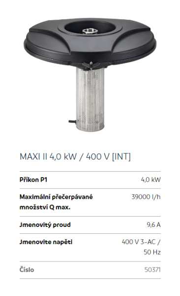 Upřesnění parametrů pro Oase AirFlo 4.0kW/400V (výkonný aerátor s fontánou)