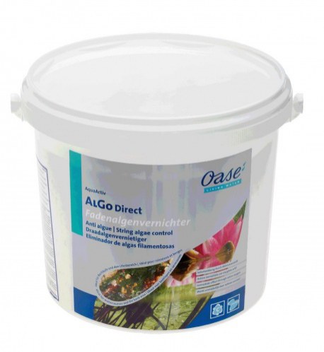 Likvidátor vláknitých řas Oase AlGo Direct spolehlivě a rychle odstraňuje vláknité řasy díky uvolňování aktivního kyslíku. Řasy jsou během minimální doby usmrceny a mohou pak být sebrány podběrákem. Zbytky řas potom biologicky odbourají obsažené mikroorganismy. Proto musí být po aplikaci zajištěn dostatečný přísun kyslíku. Používá speciálně pro lokální a rychlé ošetření řas, např. v potocích.