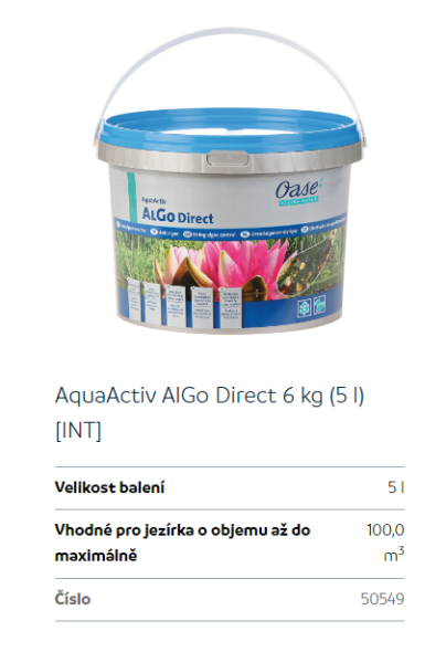 - Oase AlGo Direct dopoledne cíleně a co nejrovnoměrnější nasypte na shluky řas. U potůčků před použitím vypněte čerpadlo, aby tak byla zajištěna dostatečná doba působení 1-2 hod.