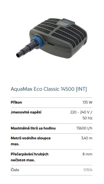 Upřesnění parametrů pro Oase Aquamax Eco Classic 14500 (jezírkové čerpadlo)