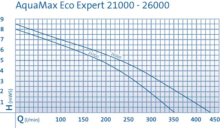 - Výkon čerpadla: 21000 l/hod., maximální výtlak: 8m, příkon: 350W.