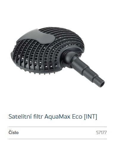• Velkoplošný satelitní filtr k napojení na druhé sací hrdlo série Aquamax Eco Premium 4.000 až 20.000, Aquamax Eco Premium 12V 6.000 a 12.000 a Aquamax Eco Twin 20.000 a 30.000.