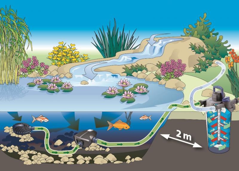 • Umožňuje nasávání znečištěné vody na dodatečném místě u dna jezírka.