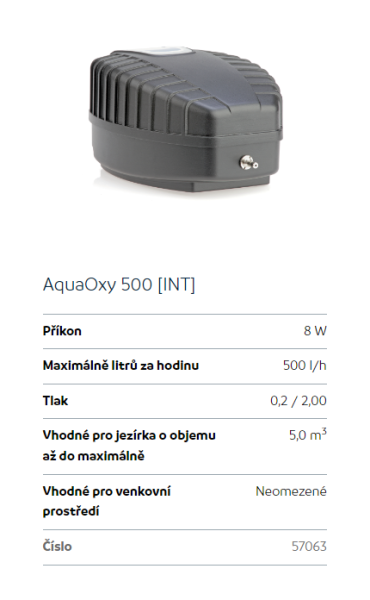 Upřesnění parametrů pro Oase AquaOxy 500 (provzdušňovací set na 5m3)