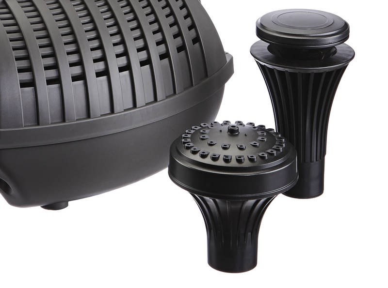 Sada Aquarius Fountain Set Classic je vodní prvek, který může být použit pro realizaci široké řady možností. Díky třem různým nástavcům fontány a jednoduchému mechanickému nastavení výšky fontány lze vodní obrazce opakovaně měnit. Teleskopické prodloužení s integrovanou otočnou hlavou vám umožní doladit fontánu podle potřeby. Druhý samostatně nastavitelný výstup umožňuje připojení k malému vodnímu toku nebo prvku. Základna zajistí bezpečné umístění na dně jezírka.