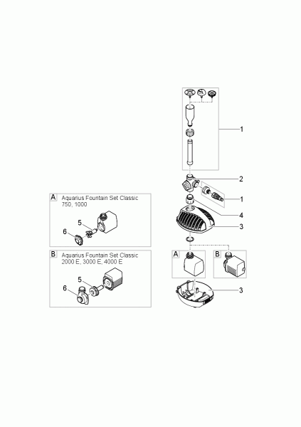 Seznam náhradních dílů na Oase Aquarius Fountain Set 4000 E máme uveden pod fotogalerií.