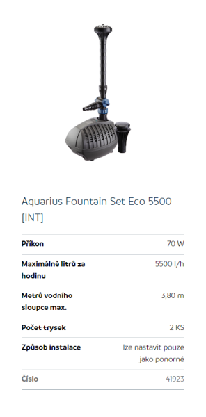 Upřesnění parametrů pro Oase Aquarius Fountain Set Eco 5500 (fontánové čerpadlo)
