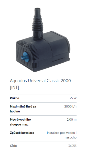 Upřesnění parametrů pro Oase Aquarius Universal Classic 2000 (fontánové čerpadlo)