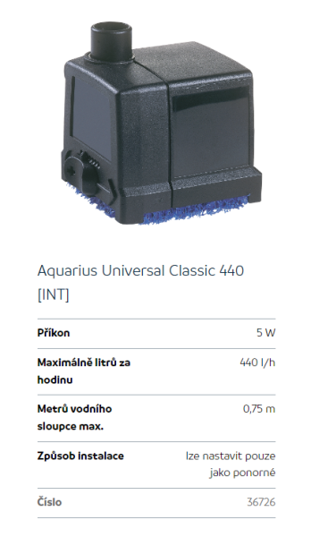 Upřesnění parametrů pro Oase Aquarius Universal Classic 440 (fontánové čerpadlo)