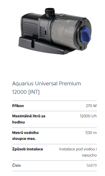 Upřesnění parametrů pro Oase Aquarius Universal Premium 12000 (fontánové čerpadlo)