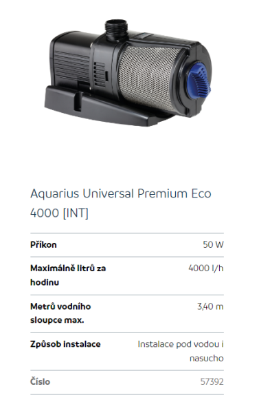 Upřesnění parametrů pro Oase Aquarius Universal Premium Eco 4000 (fontánové čerpadlo)