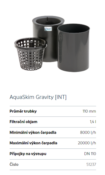 Upřesnění parametrů pro Oase AquaSkim Gravity (jezírkový skimmer na 40 m²)