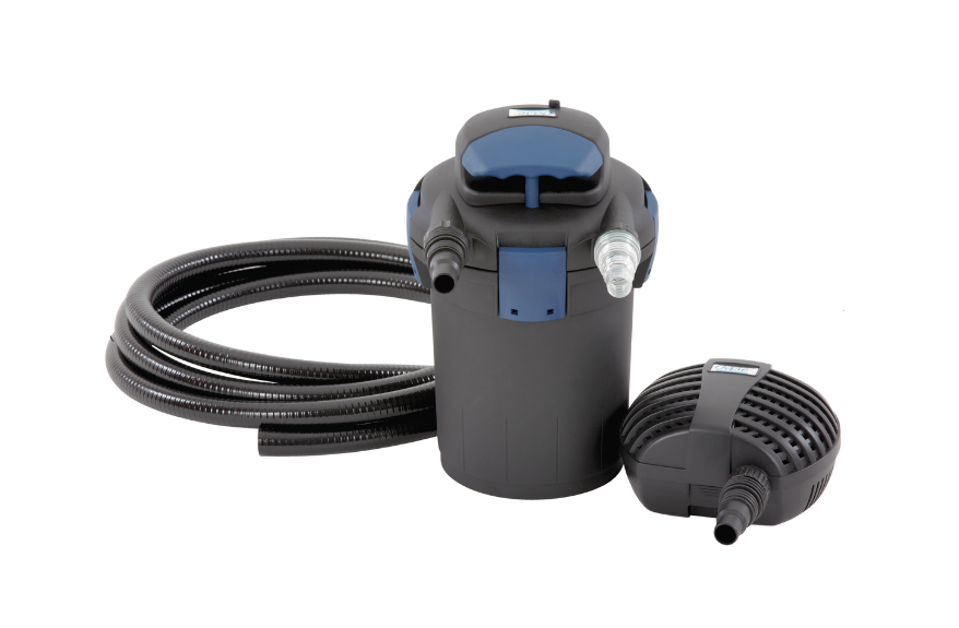 Spolehlivý set tlakového filtru s UVC zařízením a filtračním čerpadlem.