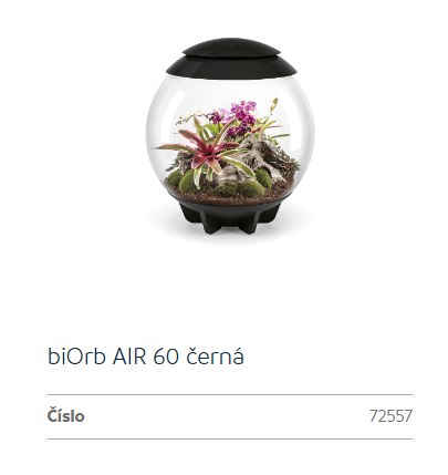 Upřesnění parametrů pro Oase biOrb AIR 60 (terárium černé)