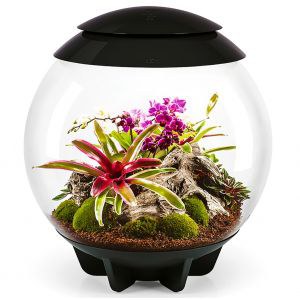 Oase biOrb AIR 60 - vše v jednom terárium v elegantní černé barvě pro pohodlné pěstování tropických rostlin a živočichů. Oase biOrb AIR 60 je elegantní terárium ve tvaru koule vyrobená z foukaného akrylátu, který má až dvakrát vyšší izolační vlastnosti a o 23% vyšší průzračnost oproti klasickému sklu. Sklo nechává projít 70% světla, akrylát 93%. biOrb AIR 60 se automaticky postará o mikroklima potřebné pro pohodlné pěstování tropických rostlin. Vytváří klima podobné jejím přirozeným podmínkám pod tropickými lesními společenstvy, což má za následek, že tropické rostliny jako jsou třeba orchideje rostou jako v přirozeném prostředí. Do terária můžete umístit širokou škálu rostlin, nejvhodnější jsou pomalu rostoucí tropické rostliny, které k správnému životu potřebují hodně vlhkosti, naopak sukulenty nebo rostliny, které upřednostňují suché prostředí nejsou do terária Oase biOrb AIR 60 vhodné. Navíc je v teráriu Oase biOrb AIR 60 možné kromě rostlin chovat i drobné tropické živočichy - například chameleony trpasličí, gekony denní nebo různé druhy hmyzu všech velikostí a barev, od kudlanky nábožné až po stonožky nebo pavouky.