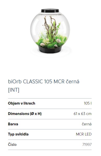 Upřesnění parametrů pro Oase biOrb CLASSIC 105 MCR (akvárium černé)