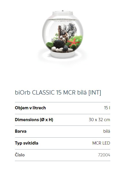 Upřesnění parametrů pro Oase biOrb CLASSIC 15 MCR (akvárium bílé)