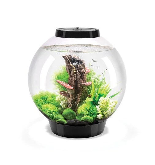 Vše v jednom klasické kulaté akvárium biOrb s LED osvětlením a objemem 30l pro pěstování vodních rostlin a živočichů v černé barvě.