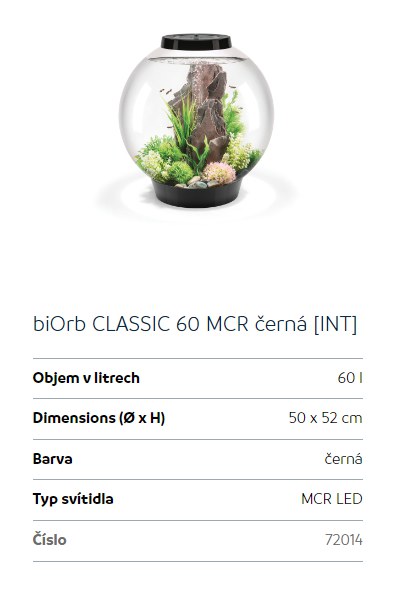 Upřesnění parametrů pro Oase biOrb CLASSIC 60 MCR (akvárium černé)