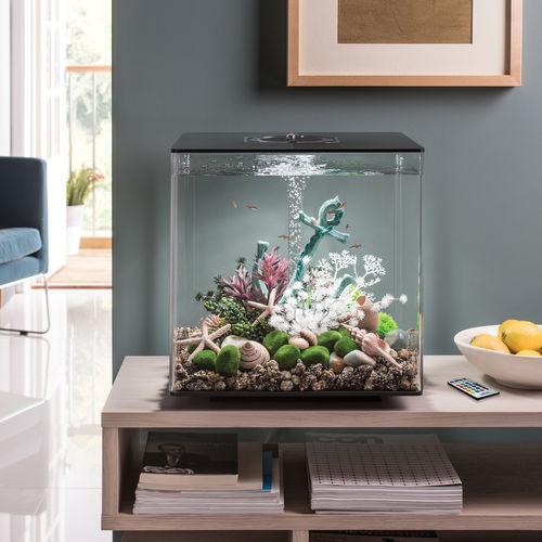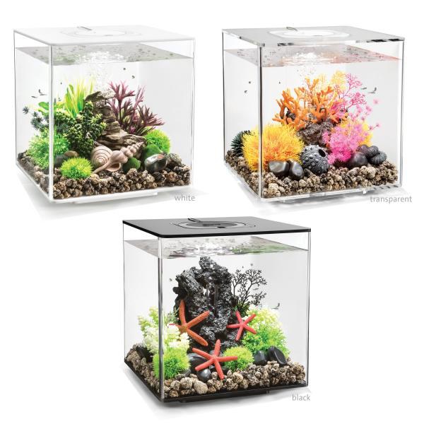 • Designový objekt biOrb CUBE je ohraničen rámem. Tato verze je dostupná v různých velkostech a barvách. V závislosti na designovém provedení lze osvětlení ovládat v časových cyklech. Můžete si vybrat mezi různými barvami osvětlení. Kromě akrylátového akvária obsahuje kompletní sada LED světelnou jednotku, akvarijní čerpadlo, transformátor, provzdušňovací kámen, keramické médium a filtrační náplň. Tento designový objekt může být použit také jako akvárium.