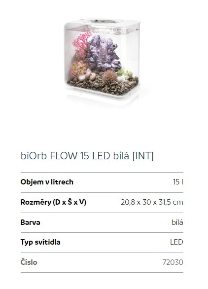 Upřesnění parametrů pro Oase biOrb FLOW 15 LED (akvárium bílé)