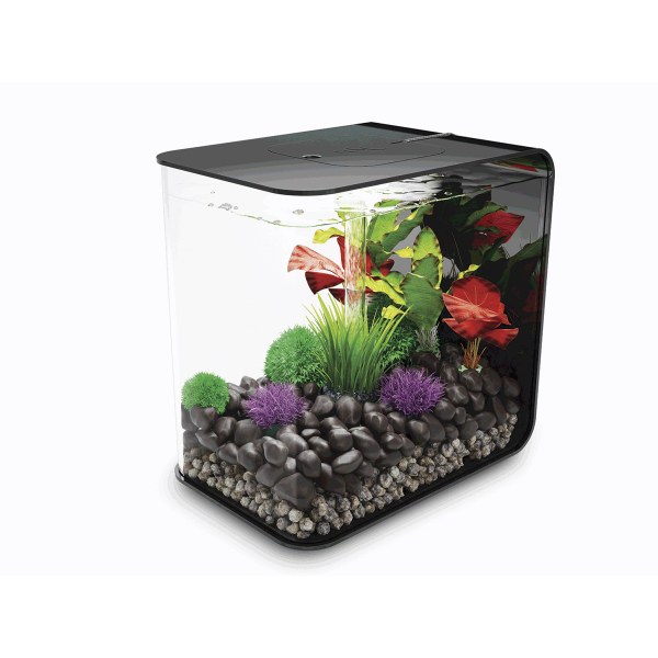 Stylové domácí akvárium OASE biOrb FLOW s netradičním designem a kvalitním zpracováním s MCR LED osvětlením a objemem 15 l v černé barvě.