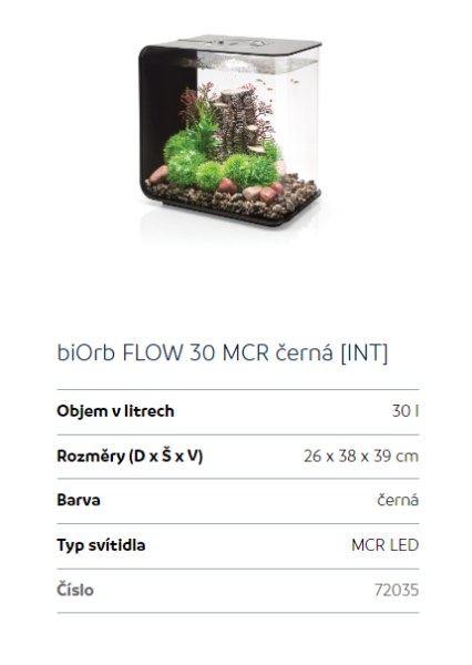 Upřesnění parametrů pro Oase biOrb FLOW 30 MCR (akvárium černé)